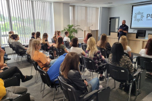 Po spotkaniu z Zastępcą Komendanta Miejskiego Policji w Bielsku-Białej, studenci mieli okazję zwiedzenia niezwykle nowoczesnej siedziby Komendy oraz spotkania się z instruktorem wyszkolenia strzeleckiego, oraz techniki kryminalistyki. Podczas tej części spotkania studenci mieli okazje wysłuchania ciekawych prelekcji związanymi z tymi obszarami pracy Policji.