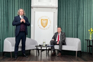 27 marca 2024 roku w Katowicach odbyło się spotkanie Pana Dariusza Wieczorka Ministra Nauki ze śląskim środowiskiem naukowym. Spotkanie odbyło się w Klubie Rawa, na poddaszu spinPLACE, gdzie Minister rozmawiał nie tylko ze społecznością studencką i doktorancką Uniwersytetu Śląskiego, ale również z rektorami innych uczelni naszego województwa. Akademię Nauk Stosowanych w Bielsku-Białej reprezentował JM Rektor dr hab. inż. Jacek Binda, prof. ANSBB.