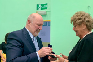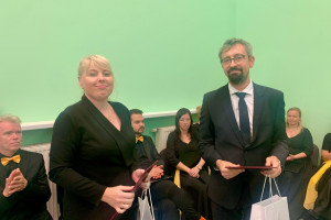 Po zakończeniu ceremonii nadania sztandaru, Rektor dr hab. inż. Jacek Binda, prof. ANSBB wygłosił przemówienie, w którym podkreślił wagę tego wydarzenia oraz wyróżnienia, jakie spotkało uczelnię ze strony Sejmiku Województwa Śląskiego. Pani Dyrektor Generalna mgr Szarlota Binda została uhonorowana Złotą odznaką honorową dla zasłużonych dla Województwa Śląskiego. Odznakę wręczył Pan Jan Chrząszcz, Radny Sejmiku Województwa Śląskiego. Ponadto Pani Dyrektor została uhonorowana Bielską Perłą Edukacji. W trakcie przemówienia wręczono również symboliczne kwiaty oraz odczytano listy gratulacyjne od instytucji państwowych, w tym Ministerstwa Nauki i Szkolnictwa Wyższego.