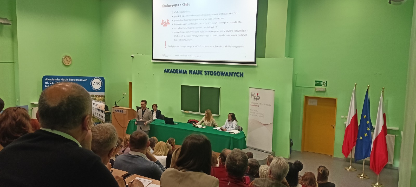 W murach Akademii Nauk Stosowanych w Bielsku-Białej odbyło się szkolenie poświęcone Krajowemu Systemowi e-Faktur, czyli KSeF. Wydarzenie zostało zorganizowane przez I Urząd Skarbowy w Bielsku-Białej.