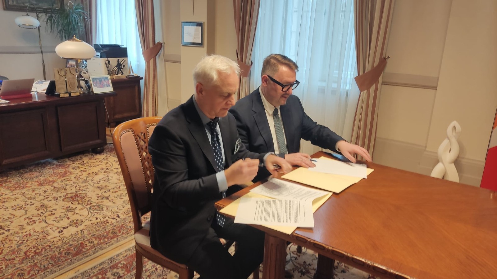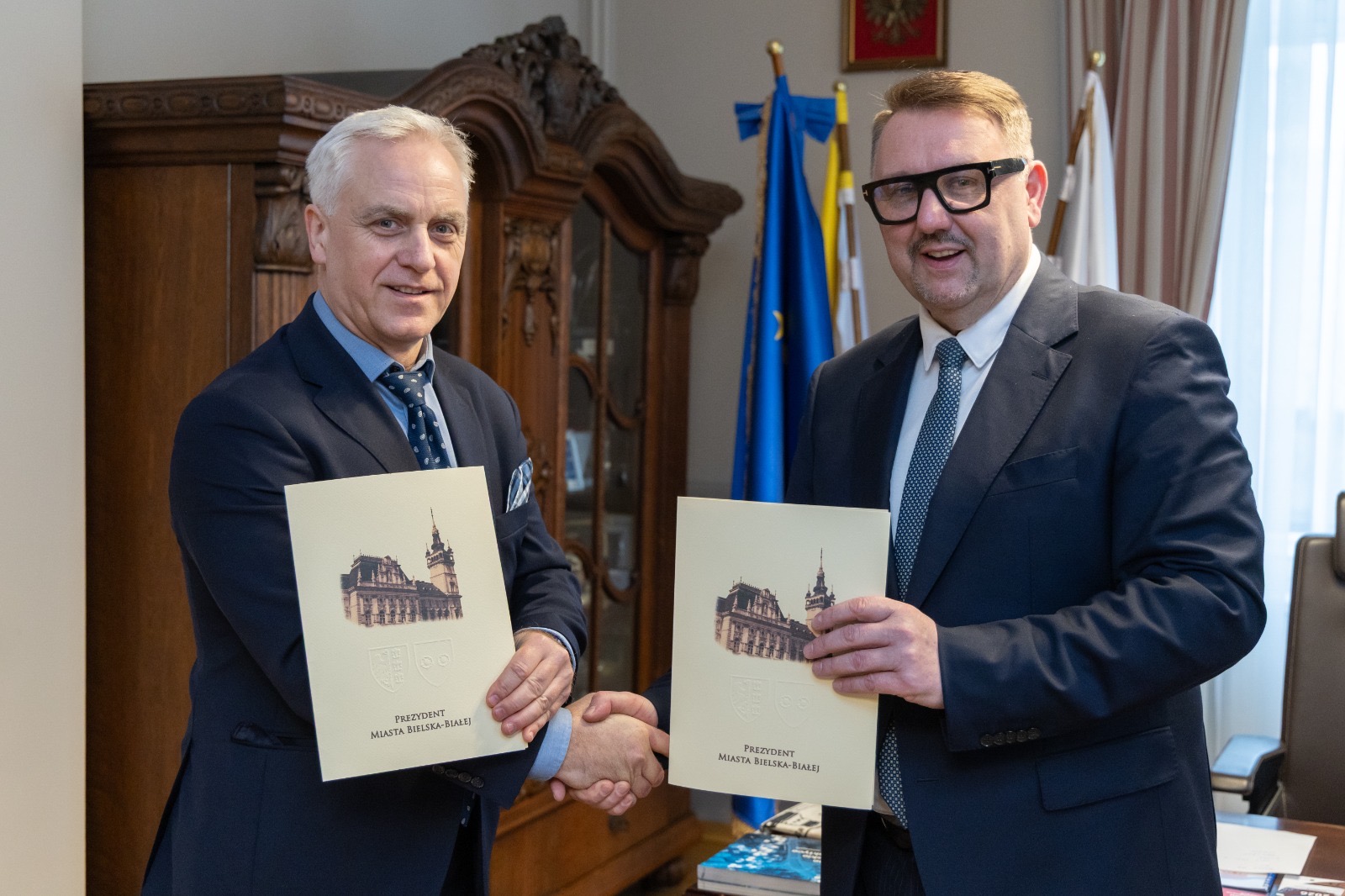 W dniu 05 lutego 2026 r. nastąpiło uroczyste podpisanie porozumienia o współpracy pomiędzy Miastem Bielsko-Biała reprezentowanym przez Pana Prezydenta Jarosława Klimaszewskiego a Akademią Nauk Stosowanych w Bielsku-Białej, którą reprezentował JM Rektor dr hab inż. Jacek Binda, prof. ANSBB.