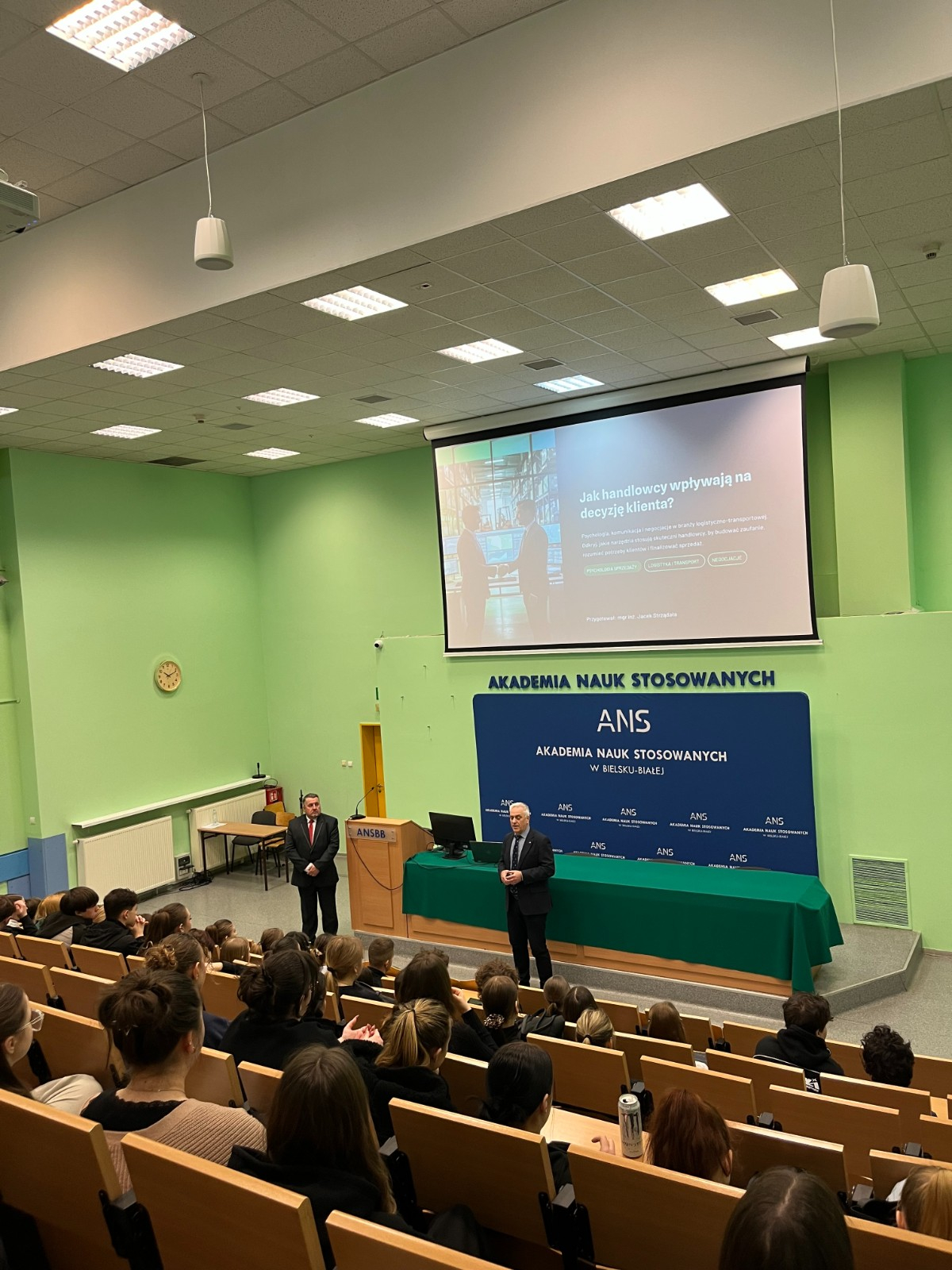 Program Dnia Otwartego wzbogaciły również wykłady zaproszonych prelegentów. Pan Jacek Strządała poprowadził interesujący wykład pt. „Jak handlowcy wpływają na decyzje klientów”, natomiast Prodziekan ANS w Bielsku-Białej zaprezentował temat „Nowoczesne technologie w służbie policji”. Dużym zainteresowaniem cieszyły się także warsztaty „TRAMPKI na giełdzie”, które w przystępny sposób wprowadzały uczestników w zagadnienia związane z rynkiem finansowym.