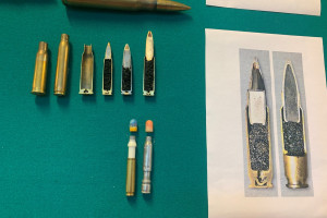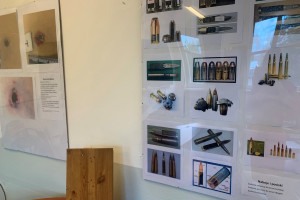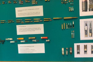 Udało się zgromadzić również liczne fotografie amunicji specjalnej, w tym z pociskami fragmentującymi wraz z ich zdjęciami po trafieniu w przeszkodę. To daje wyobrażenie o sposobach rażenia pocisków różnej konstrukcji i kalibru. Tuż obok zdjęć amunicji prezentowane są zdjęcia ran postrzałowych, które zostały zadane z różnych odległości oraz ran wlotowych i wylotowych. Kolejna grupa pomocy dydaktycznych to ubrania wykonane z różnych tkanin z przestrzelinami po trafieniu pociskiem 9 mm Parabellum z różnych odległości, w tym z bardzo bliska. Studenci mogą przeanalizować, jak odległość oddania strzału wpływa na ślady, które można ujawnić na tkaninach. Prezentowane są również przestrzeliny wykonane w różnych materiałach np. w drewnie, papierze czy poliwęglanie.