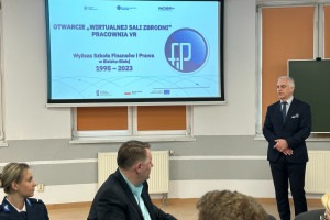 Zebranym gościom zaprezentowano nowoczesną Pracownię VR – „wirtualne miejsce zbrodni”, w której to studenci Prawa oraz Bezpieczeństwa wewnętrznego będą mogli doskonalić umiejętności związane z prowadzeniem oględzin kryminalistycznych oraz zabezpieczeniem śladów na miejscu zdarzenia.