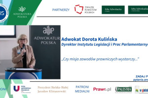 - Pani adw. Dorota Kulińska Dyrektor Instytutu Legislacji i Prac Parlamentarnych przy Naczelnej Radzie Adwokackiej.