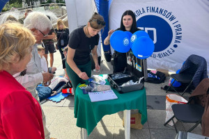 Wyższa Szkoła Finansów i Prawa w Bielsku-Białej miała przyjemność wziąć udział w tegorocznych Dniach Bielska-Białej na Placu Chrobrego, prezentując swoje stoisko z szeroką gamą atrakcji i działalności promującej edukację, bezpieczeństwo oraz zaangażowanie społeczne. Nasze stoisko, przygotowane z myślą o różnych grupach wiekowych, zapewniło mnóstwo emocji i wiedzy dla każdego uczestnika. Jednym z głównych punktów naszego stoiska były warsztaty z pierwszej pomocy i samoobrony. Dzieliliśmy się niezbędną wiedzą, która może uratować życie w nagłych sytuacjach.