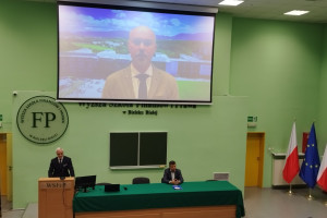 Po przywitaniach wygłoszonych przez dr hab. inż. Jacka Bindę, prof. WSFiP – Rektora Wyższej Szkoły Finansów i Prawa w Bielsku-Białej, prof. dr Nataliya Chukhray, prorektora Politechniki Lwowskiej(Ukraina) oraz prof. ing. Jozef Ristvej, PhD. Prorektora Żylińskiego Uniwersytetu w Żylinie (Słowacja) głos zabrał i otwarł konferencję Piotr Kucia I zastępca prezydenta Miasta Bielska-Białej.